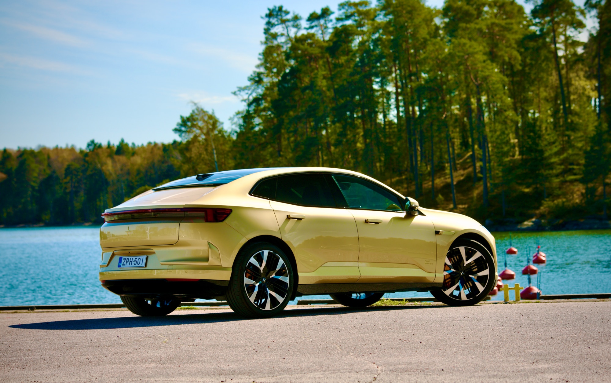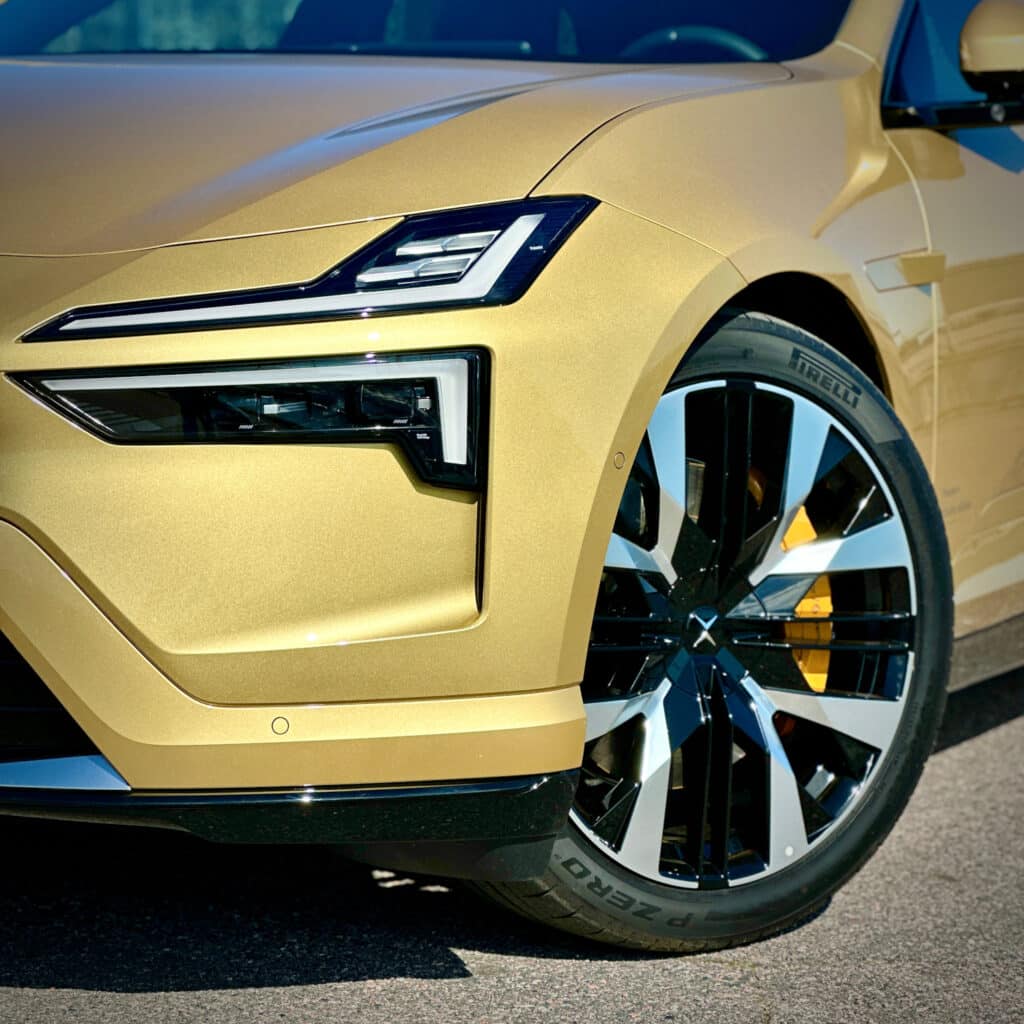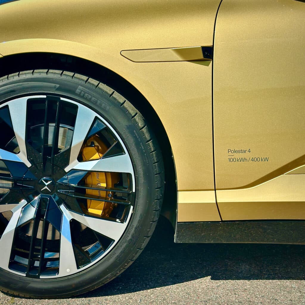 Kilpailijoita löytyy useita: Tesla Model Y Performance, Kia EV6 GT, Lotus Eletre ja jopa Porsche Macan Electric liikkuvat samoilla apajilla. Polestar pyrkii kuitenkin yhdistämään muotoilullisen näyttävyyden ja pohjoismaisen yksinkertaisuuden, johon sekoitetaan ripaus kiinalaisen valmistuksen tehokkuutta ja tekniikkaa. Kultainen erikoisväri nostaa katseita kaikkialla – koeajossa huomio oli taattu, ja Polestar 4 todella erottui liikenteessä.