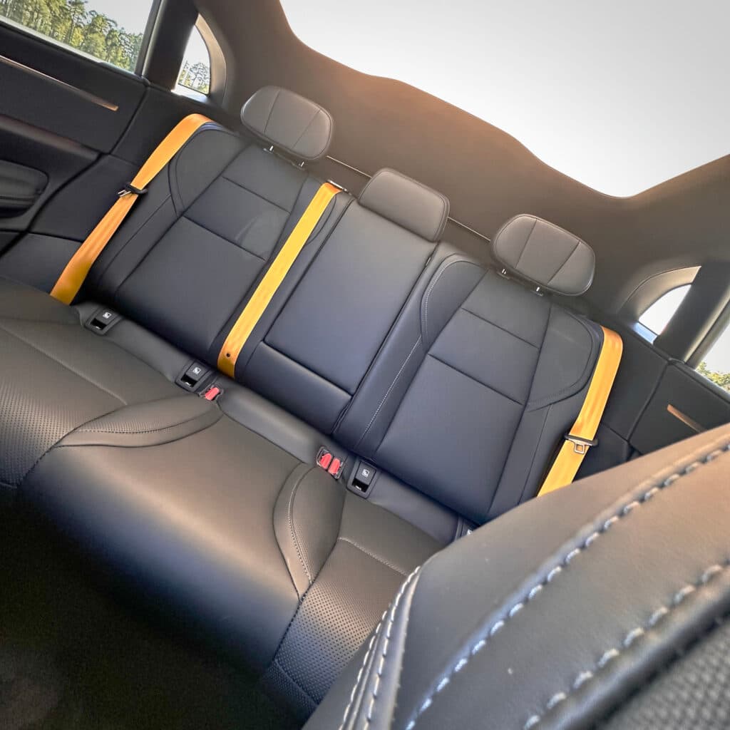 Takanäkymä ratkaistaan kamerapeilin avulla, mikä vaatii aluksi totuttelua. Näkyvyys on kuitenkin laaja ja kirkas, ja kameran avulla nähdään myös taaksepäin istuvien matkustajien yli. Takapenkillä tilaa on runsaasti, sillä akkupohjarakenne mahdollistaa tasaisen lattian.