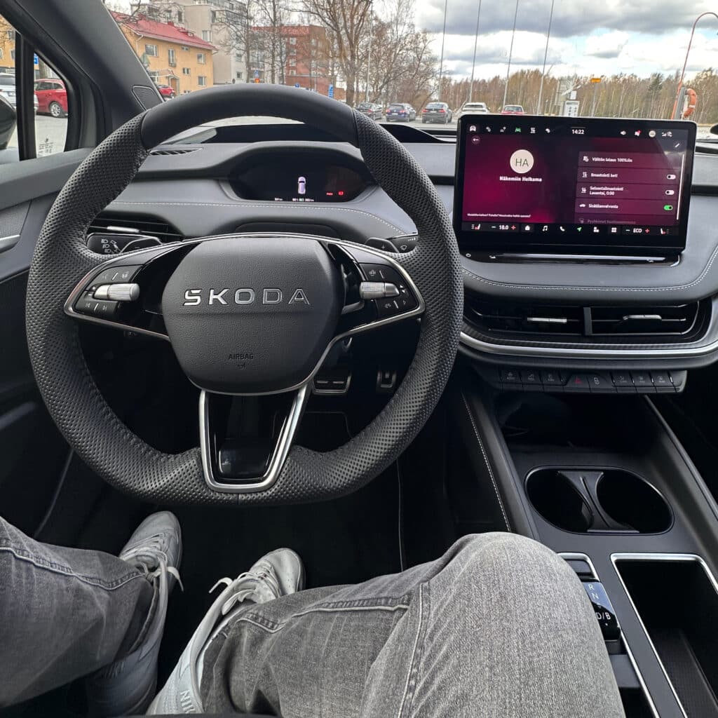 Škoda Enyaq Sportline tuo perheautoluokkaan ripauksen sporttisuutta ja ajamisen iloa ilman, että tiloista tai mukavuudesta tingitään.